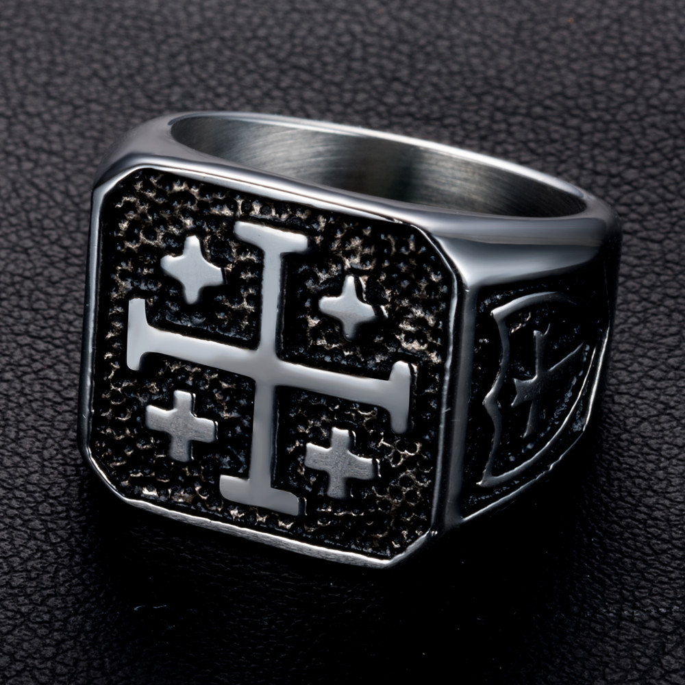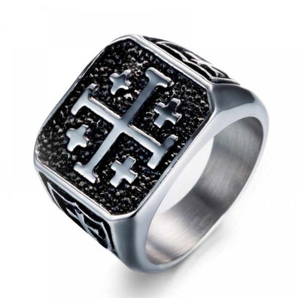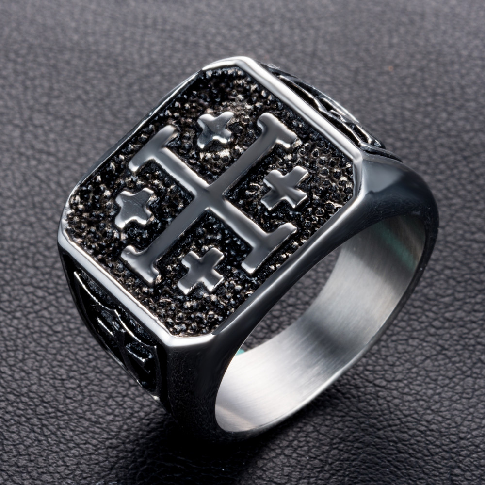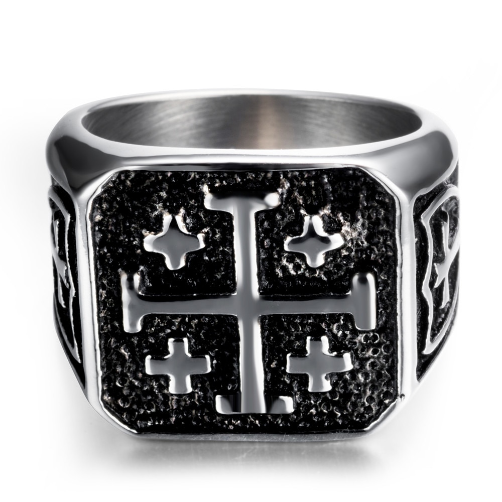 Mens Jerusalem Christian Cross Jesus Christ Medieval Knight Ring in Stainless Steel